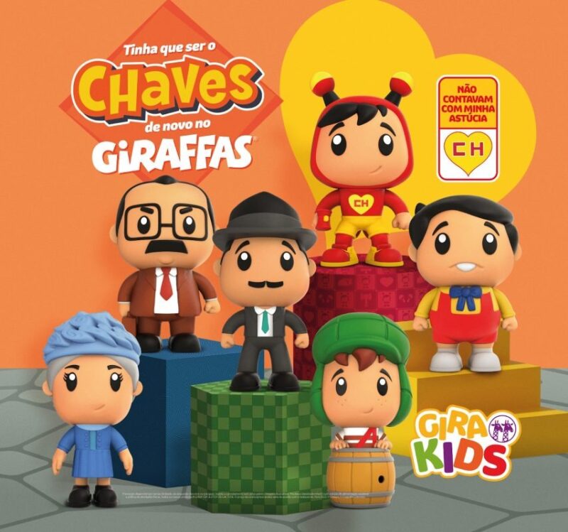 Os icônicos personagens de Chaves estão de volta com em uma nova coleção de miniaturas colecionáveis no Giraffas! A rede decidiu trazer de volta a nostalgia com figuras como a Bruxa do 71, Seu Barriga, Professor Girafales, Chaves dentro do Barril, Nhonho e o inconfundível Chapolin Colorado.