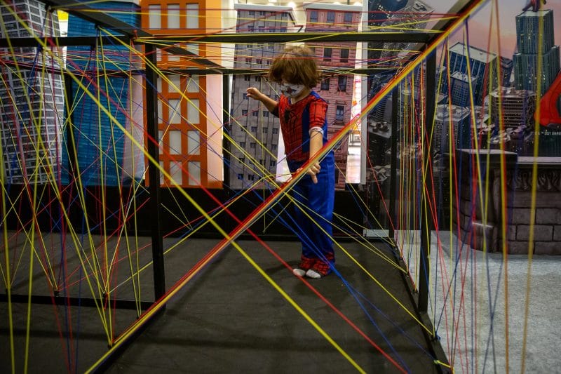 Para entrar no clima do filme, a entrada é instagramável com espaço para fotos. Na oficina de colorir, os pequenos poderão pintar desenhos exclusivos do Homem-Aranha e nas atividades de quebra-cabeça, cama de gato e jogo da memória, as crianças vão desenvolver o raciocínio. Tem ainda oficina de tatuagem, escorrega e pula-pula, e uma escalada radical.