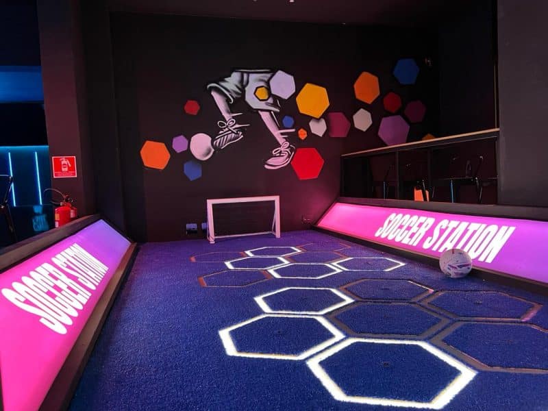Um dos jogos em destaque é o “Soccer Arena”, que conta com duas arenas digitais com telona gigante. Nele, os jogadores precisam chutar a bola na tela para acertar os objetos que aparecem a fim de acumularem pontos. As salas têm capacidade de até três pessoas.