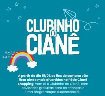 O Clubinho do Cianê traz uma atração diferente a cada final de semana. No dia 29, a cultura africana ganha destaque com o balangandã, objeto repleto de fitas coloridas e que chama atenção pelo som que reproduz. No dia 30, os participantes brincam de caça ao tesouro, encerrando a agenda do mês.