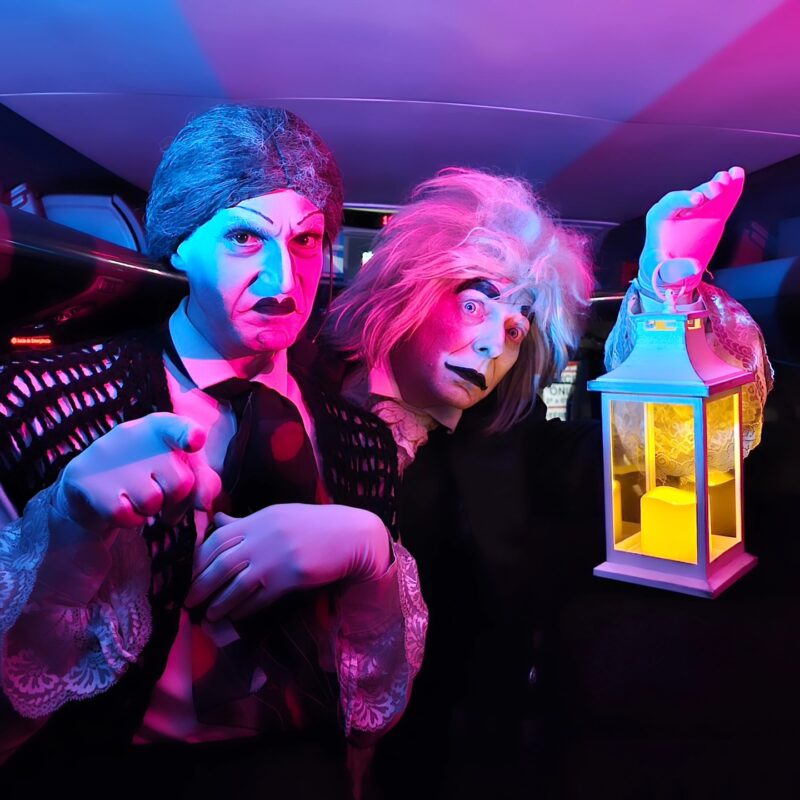 O tour é comandado por “fantasmas-anfitriões”, personagens que guiam os passageiros pelos mistérios e histórias da cidade. Entre os anfitriões estão: