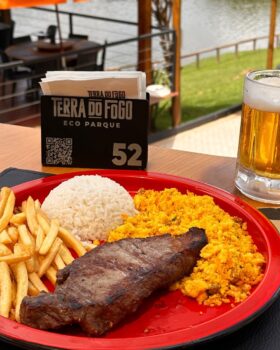 A parrilla, o fogo de chão e o aroma das brasas criam uma atmosfera que faz jus ao nome do parque. O menu, preparado por assadores especializados, oferece opções variadas de proteínas e acompanhamentos.