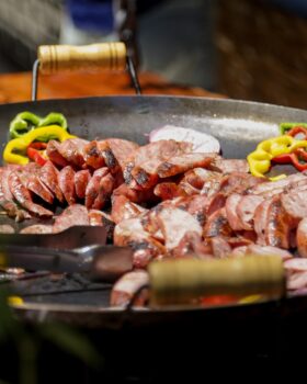 No coração do parque, o Espaço Fogo de Chão e Comida Raiz transforma o ato de cozinhar em espetáculo. São 100m² dedicados ao preparo de carnes nobres, pratos rústicos e técnicas ancestrais que valorizam o sabor e a textura dos ingredientes.