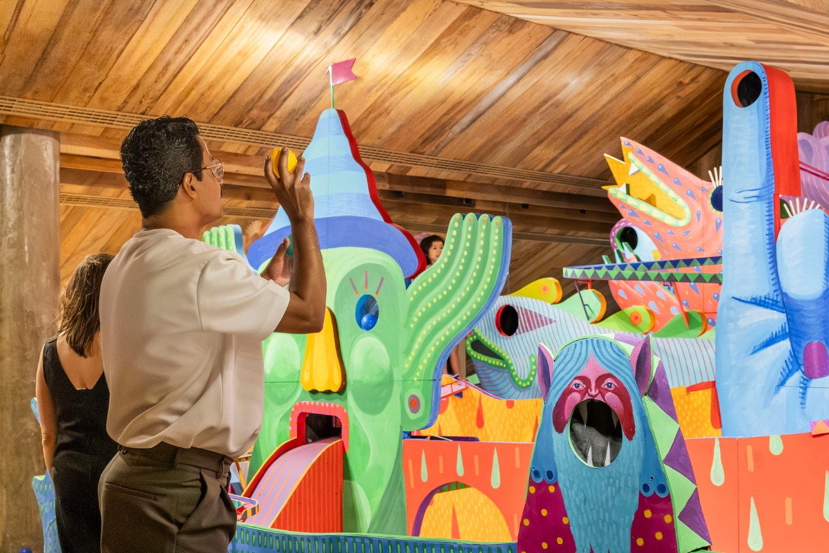 “Treco no Baile”, do artista brasileiro Deco Farkas (Treco), propõe mais do que uma exposição: cria um ambiente configurado como um grande brinquedo. O gesto ativa a obra, o olhar constrói narrativas e o inesperado se torna parte essencial do percurso. Em sintonia com a proposta da Sala Ali, que tem a infância como força motriz, a mostra coloca o visitante no centro de uma relação mais ativa com a arte.