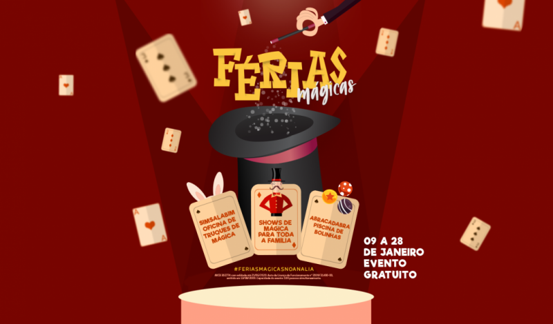 Quem aí em casa está precisando fazer mágica para conseguir entreter os pequenos nessas férias? Sabemos que não é fácil, mas o bom é que não falta opção de passeio para a família! E por falar em mágica, o Shopping Anália Franco preparou uma atração especial com shows e oficinas de truques, além de piscina de bolinhas para os menorzinhos. As “Férias Mágicas” vão até o dia 28 de janeiro, de domingo a sexta-feira, das 13h às 20h30 e sábados e feriados, das 10h às 20h30. As atividades são gratuitas.