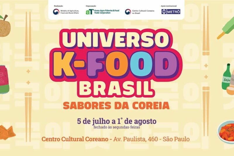 De 5 de julho a 1º de agosto, o público paulistano poderá explorar os sabores e tradições da Coreia do Sul no evento pop-up Universo K-Food Brasil, promovido pelo aT Center São Paulo em parceria com o Centro Cultural Coreano no Brasil (CCCB).
