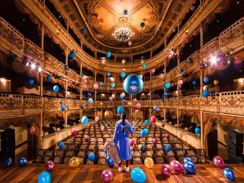 Ao longo da apresentação, os balões coloridos (de verdade) assumem diferentes papéis. Primeiro, representam a infância e, logo depois, vão murchando e perdem o glamour, uma analogia à decadência. Por fim, representam espectadores e artistas num jogo de deslocamento. Tudo isso é montado em um cenário que lembra monumentos arquitetônicos do patrimônio histórico-nacional, como o Cristo Redentor, além de teatros famosos da Belle Époque brasileira do final do século XX.