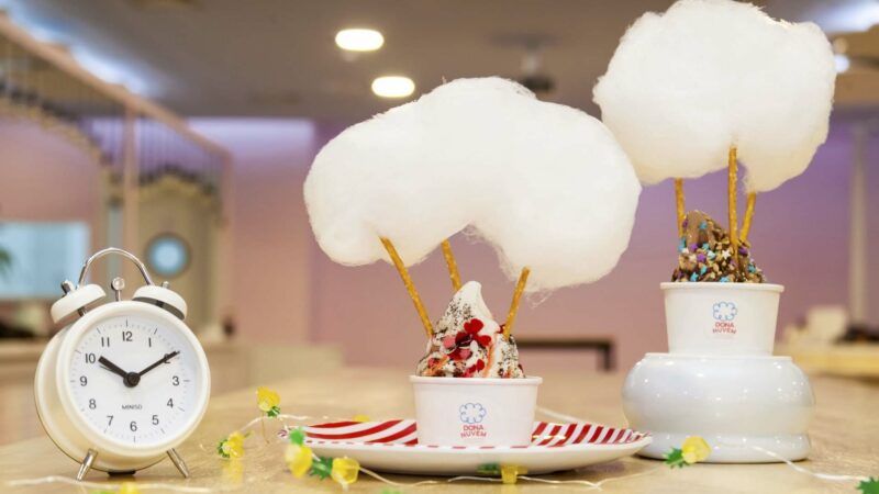 Há muitas combinações inusitadas, como o sundae de churros e o sorvete de unicórnio. Isso sem falar que os sorvetes são servidos sobre uma nuvem feita de algodão doce. A receita básica é assim: casquinha, nuvem, sorvete, calda e guloseimas por cima. O cliente escolhe o sabor do sorvete, logo em seguida, seleciona a opção de cobertura que mais agrada ao paladar.