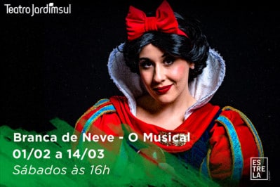 Tem criança que adora princesas por aí? Então aproveita 0 desconto para o musical Branca de Neve, que acontece no sábado, dia 14 de março, às 16h, no Teatro Jardim Sul, Vila Andrade. Os ingressos custam R$60, crianças até 2 anos não pagam.